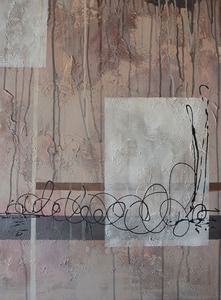 2025Acryl, mixed media. Diverse natuurlijke materialen zijn verwerkt in het schilderij
