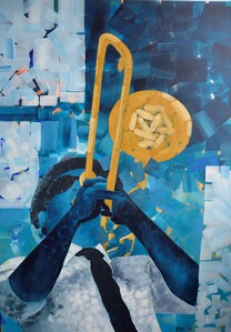 2016Het schilderij Blauw lijnenspel is gemaakt in gemengde techniek met acryl. Ik heb verschillende kleuren en tinten in blauw gebruikt. er zit veel beweging in het schilderij waardoor je het zowel horizontaal als verticaal kan bekijken. Het schilderij is inclusief lijst: chroom 6 cm